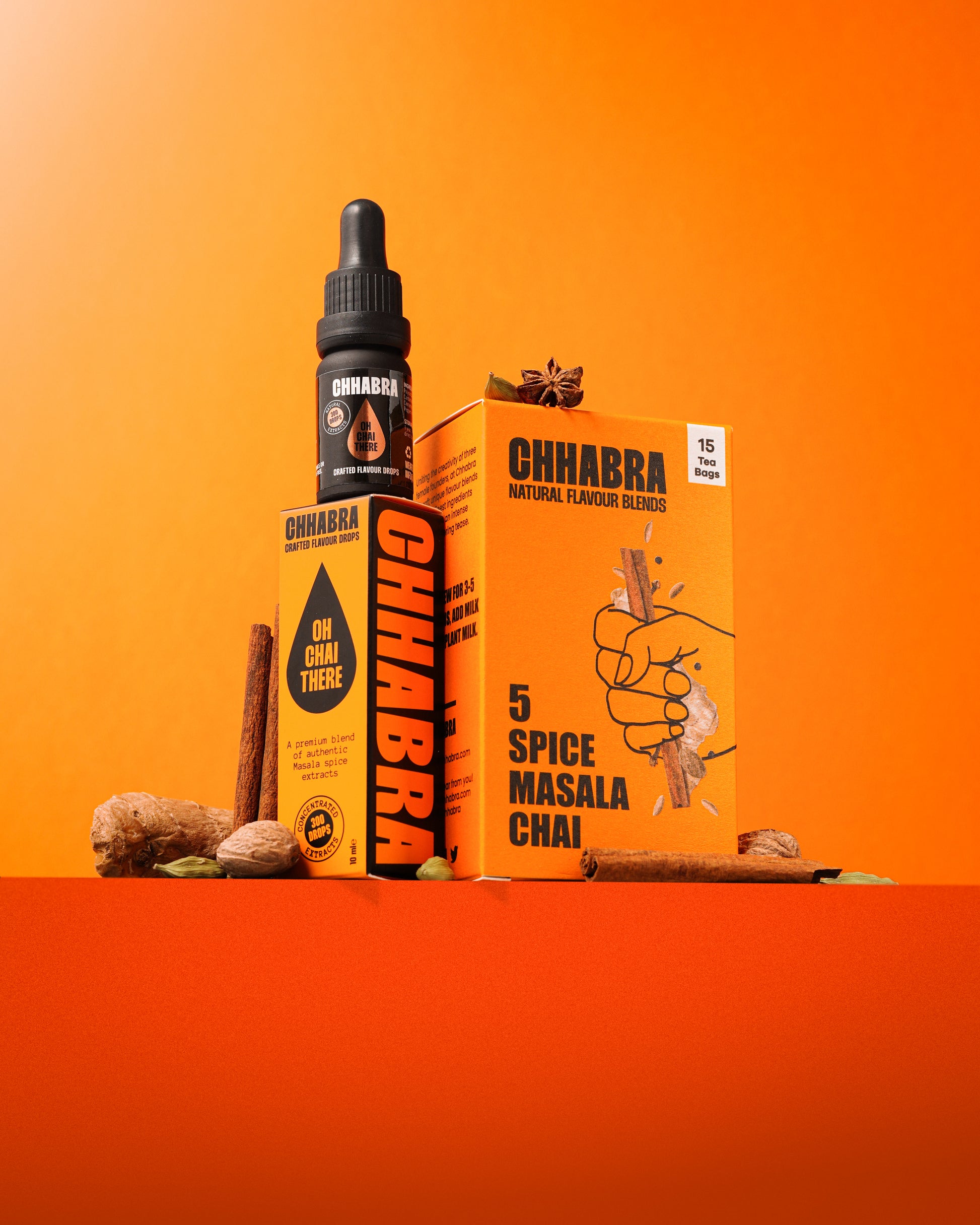 The tea is a warming blend of five whole spices with deep-bodied Assam black tea, crafted for an authentic chai experience. The drops are a concentrated hit of masala spice, designed to transform coffee, tea, or even desserts into something unforgettable. Together, they turn everyday moments into bold awakenings.